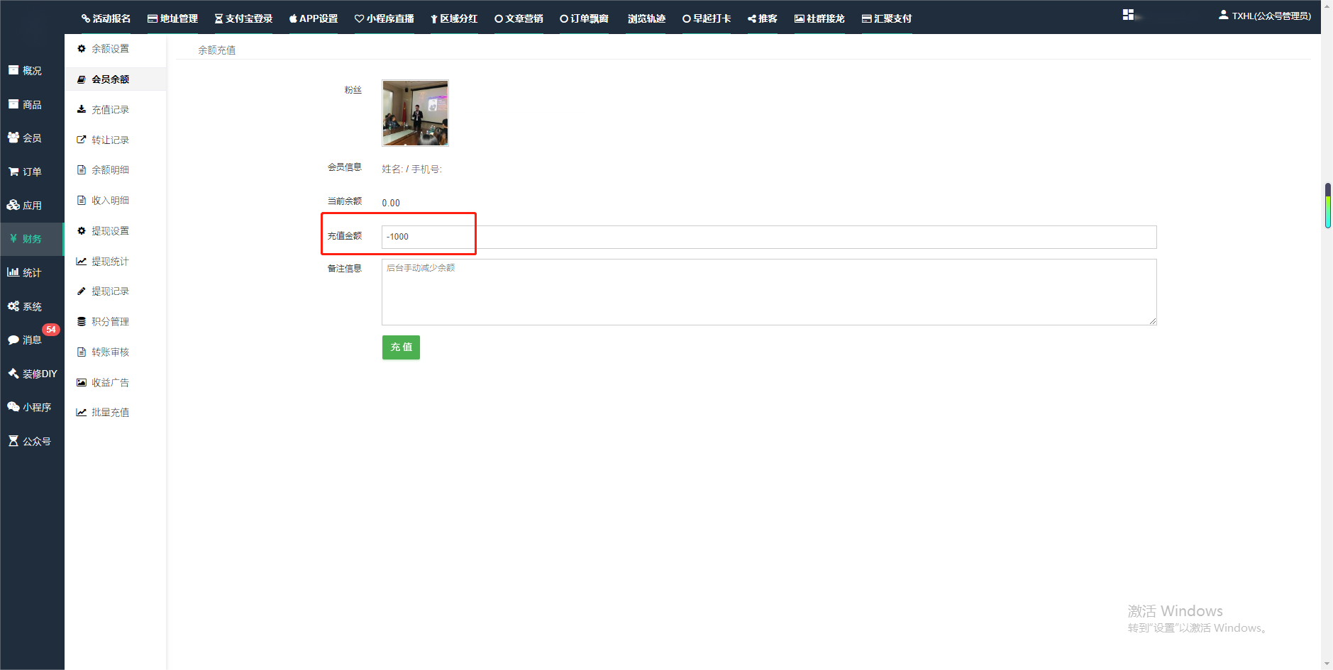 会员-余额,积分,后台如何进行充值与扣除一.如何进行余额充值-扣除1.财务-会员余额-搜索会员昵称-右边点击充值余额2.扣除余额,只需要在充值金额前加上 - 号;比如充值-100,等于扣除100余额二,如何手动充值积分-扣除积分(充值与扣除逻辑跟余额是一样的)文档更新时间: 2024-01-05 14:28 作者:链上旅行